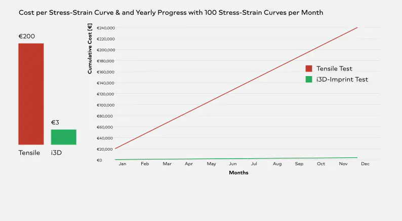 1,700,625 EUR for tensile testing versus 352,750 EUR for i3D® at identical data volume.